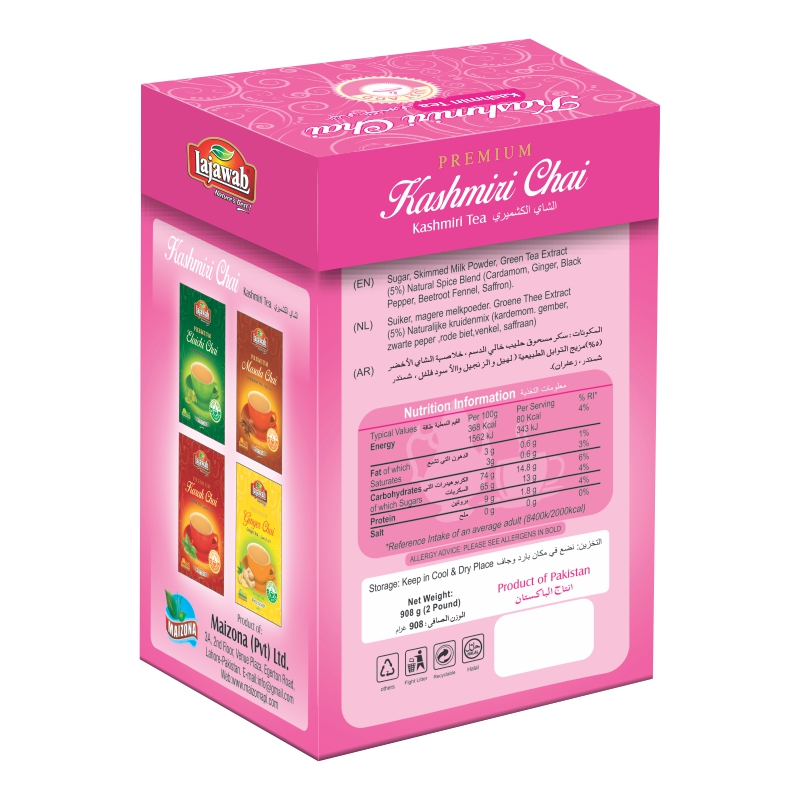 Simply add hot water and soak up the aroma of the traditional Chai. No artificial flavors, preservatives, or colorings are added. Lajawab Chai is designed to reproduce the same authentic natural taste of Chai.